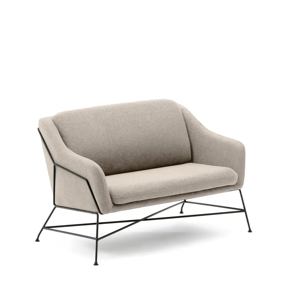 - Gestoffeerde 2-zitsbank met beige structuurstof.