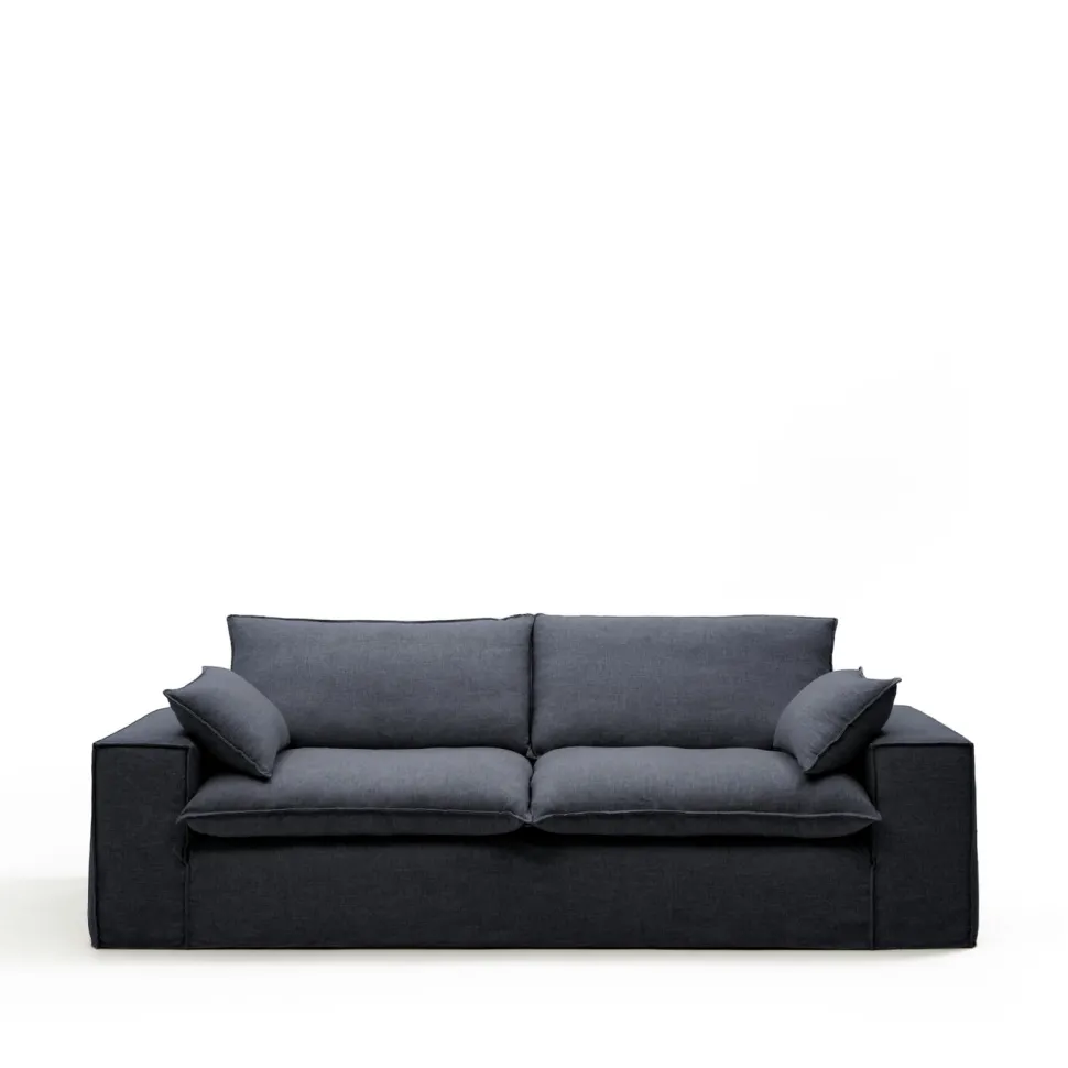 - Beige 3-zitsbank met afneembare hoezen in natuurlijke stof met linnen. Inclusief hoes.
