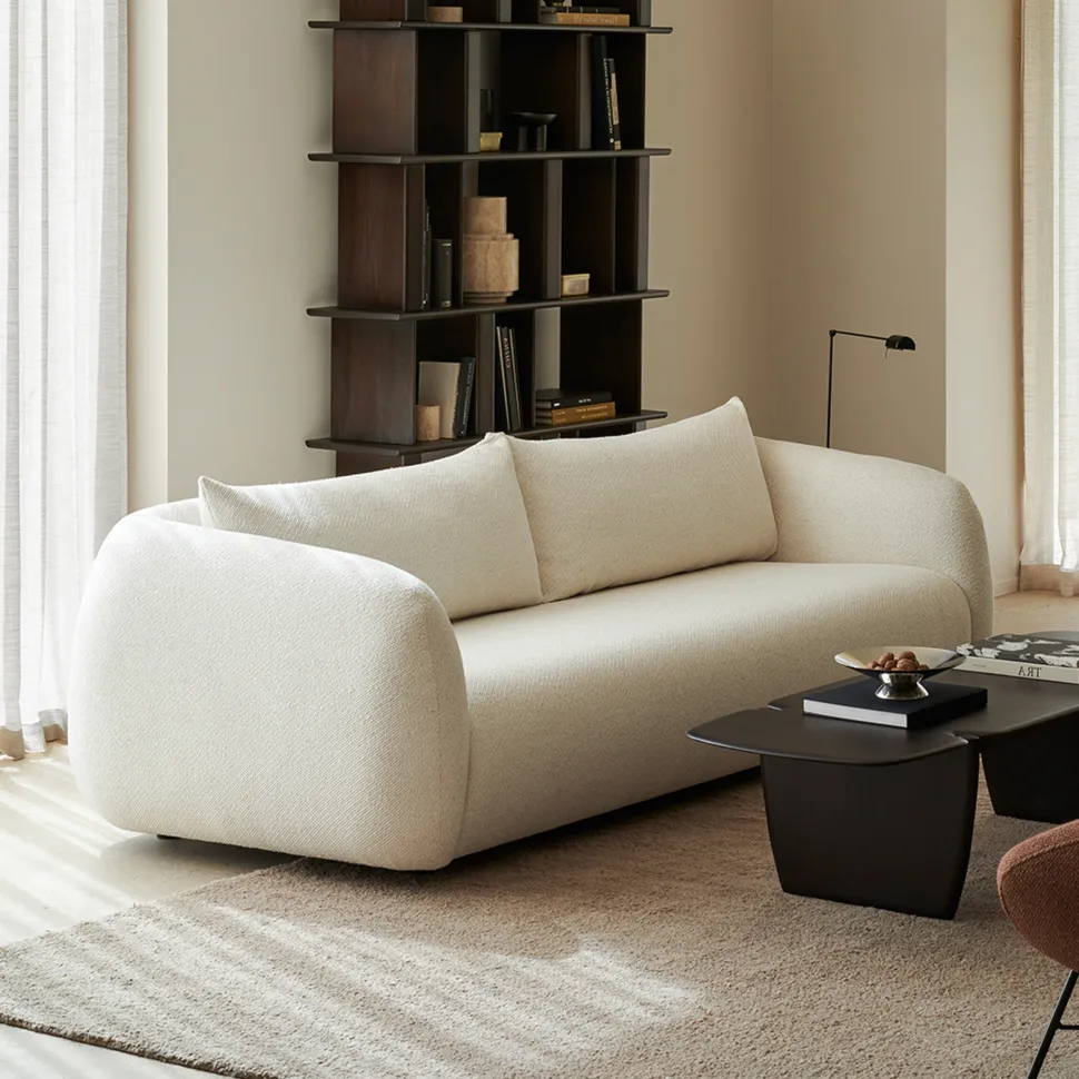 De Figur bank combineert royale proporties met een warm, uitnodigend silhouet. Een zacht gebogen rugleuning omsluit de zitting en creëert zo een cocooning effect dat zowel elegant als omarmend aanvoelt. Bekleed met rijk gestructureerde stof en afgewerkt met verfijnde dubbele stiknaden, biedt Figur diepe comfort en visuele zachtheid. Of het nu gaat om rustig loungen of gedeelde momenten, deze bank brengt ontspannen verfijning in het moderne wonen.