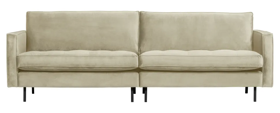 De Rodeo Classic bank is opgebouwd uit een combinatie van massief hout, multiplex, spaanplaat, polyurethaan schuim met een dichtheid van 30 kg/m3 en een zigzag vering. De rugleuning bestaat uit een combinatie van 70% gesneden schuim en 30% siliconen. Deze Rodeo is bekleed met een rijke velvet. Onze Jarra fluwelen stof heeft een luxe uitstraling. De stof voelt fijn aan en heeft een mooie lichte glans. De Jarra velvet bestaat uit 100% polyester en heeft een volle en zware kwaliteit. Het materiaal is daarom geschikt voor intensief gebruik (Martindale 100.000). Naast het stijlvolle design blijft de velvet stof lang mooi. Onze Jarra stof zal niet snel pillen en is kleurvast. De stof is, tot verrassing van velen, een zeer gemakkelijke stof om te onderhouden.