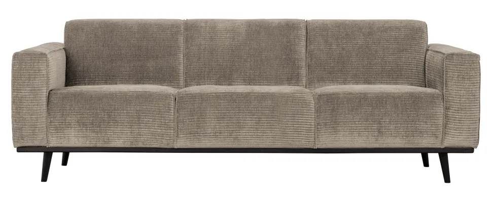 Een bank als deze is geschikt voor stoere interieurstijlen. Deze robuuste 3-zits bank bepaalt de sfeer van het interieur en biedt een goede basis voor elk gewenste woonstijl. Deze Statement 3-zitter uit de collectie van WOOOD, heeft een modern en opvallend design. De bank is bekleed met een platte brede ribstof (53%PES/47%PAC) in een taupe kleur wat de bank een aantrekkelijk uitstraling geeft. Deze ruime 3-zits bank biedt meer dan genoeg zitplekken voor het hele gezin. De Statement bankenserie is beschikbaar in meerdere varianten, stoffen en kleuren.
