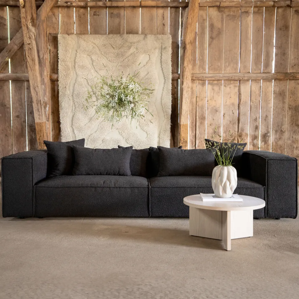 3-zits Bank Yulonda Bouclé, kleur Zwart
