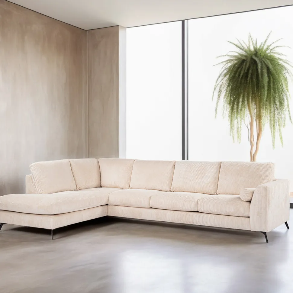 3-zits Hoekbank Joetta Links, Rib, kleur Beige
