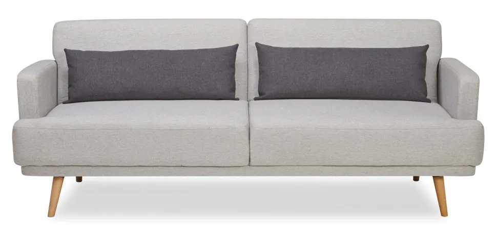 Deze moderne 3-zitsbank met slaapfunctie is de ideale oplossing voor logeerkamers, jeugdkamers of woonkamers. De bank biedt niet alleen een extra slaapmogelijkheid voor spontane overnachtende gasten – hij geeft elke kamer een moderne charme. De gestoffeerde rugleuningen en armleuningen zorgen voor optimaal zitcomfort, terwijl de twee sierkussens, die worden meegeleverd, het nog gezelliger maken en ook een visueel hoogtepunt zijn. Met zijn heldere designtaal en eenvoudige grijze kleur is de bank een tijdloze metgezel die harmonieus in elk interieur past. Dankzij de bekleding rondom zijn er geen grenzen aan waar je de bank kunt plaatsen. Als je wilt, kun je de bank ook overal in de kamer neerzetten. Het Scandinavische ontwerp wordt afgerond door de 21 cm hoge afgeschuinde poten van massief hout.