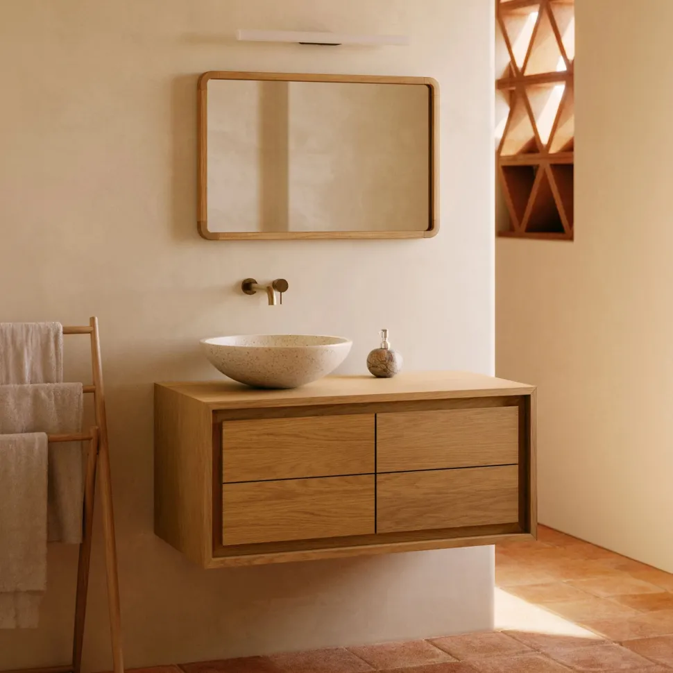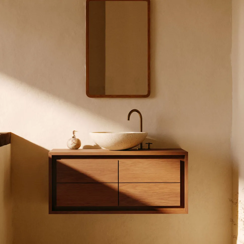 De Kenta collectie is gemaakt van vochtbestendig massief teakhout zodat u kunt ontspannen in een oosterse design spa zonder uw huis te verlaten. Laat zien dat je badkamer ook stijlvol is.