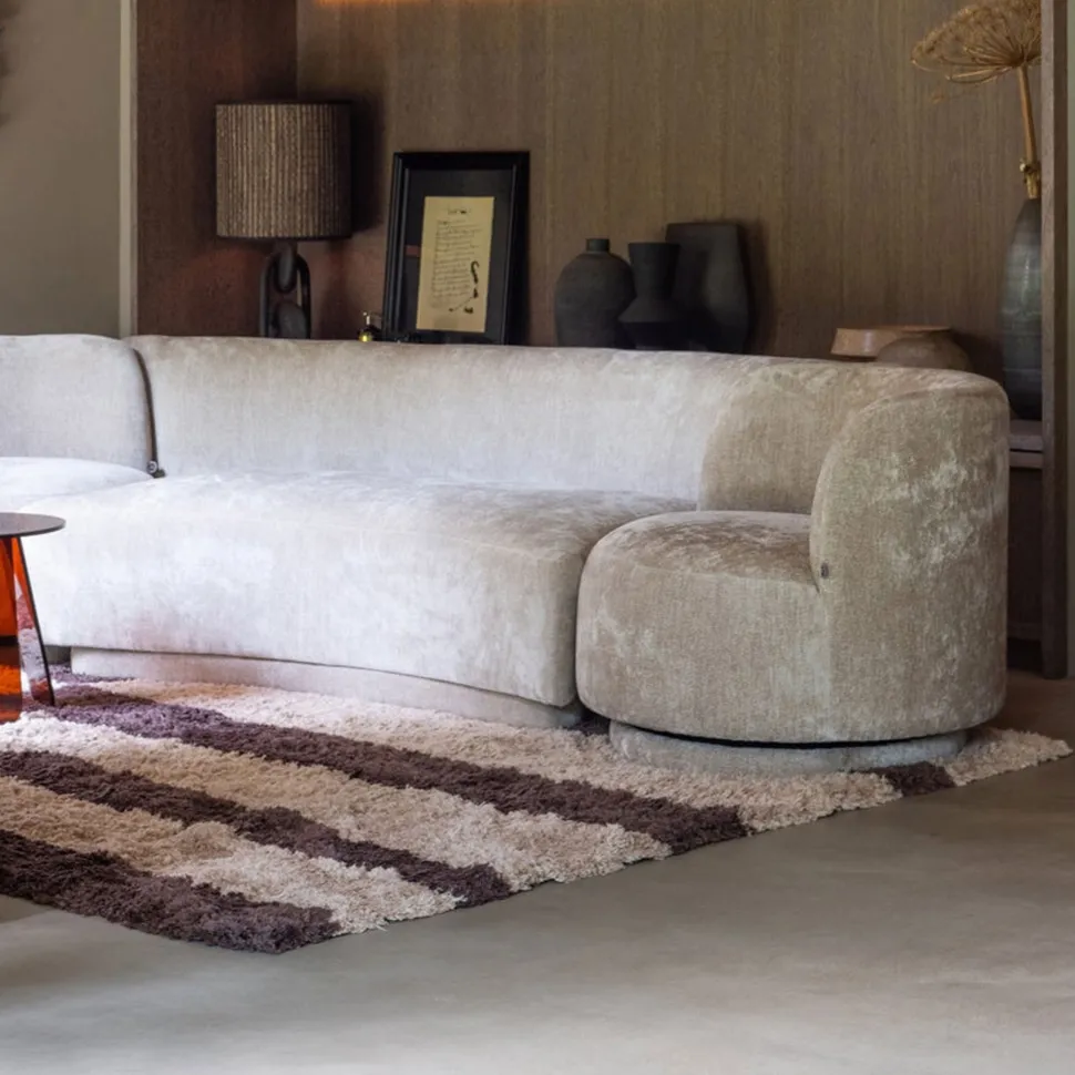 De set is bekleed met grove chenille, wat zorgt voor een warme, luxe uitstraling én een zachte, comfortabele zit. Dankzij het combinatieconcept is deze set ideaal voor gezellige zithoeken, waarbij stijl en flexibiliteit samenkomen.