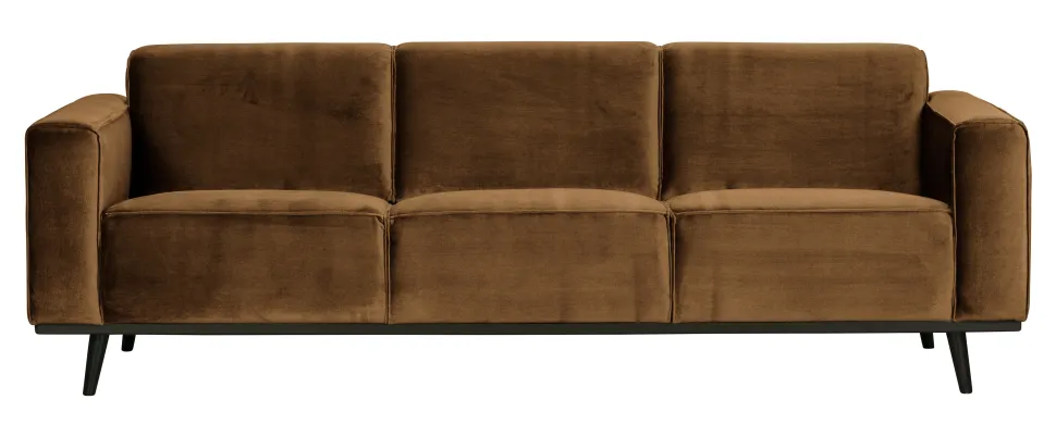 Een bank als deze staat als een duidelijk element in huis. Een bank bepaalt de sfeer van het interieur en deze bank biedt een goede basis voor meerdere woonstijlen. Deze bank Statement uit de collectie van WOOOD, is basic, maar valt door de omvang wel op. Statement is bekleed met een velvet stof (100% PES) in een honing gele kleur en dat geeft de bank een chique uitstraling en voelt heerlijk aan. Deze ruime 3-zits bank biedt ruimte genoeg voor het hele gezin en zit heerlijk. De Statement bank is beschikbaar in meerdere varianten, stoffen en kleuren.