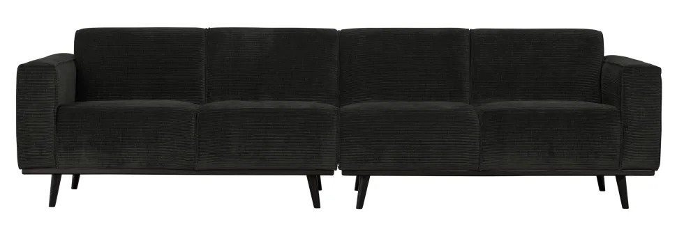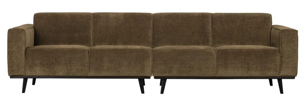 Een royale 4-bank die zijn naam eer aan doet. Deze Statement bank bepaalt is een echte bink in jouw woonruimte. De Statement collectie van WOOOD staat bekend om zijn eenvoudige design, met robuust kleur- en stofgebruik. Statement is vervaardigd uit een platte brede ribstof (53%PES/47%PAC) in een warm taupe kleur wat de bank zijn krachtige uitstraling geeft. De Statement 4-zitter heeft een hoog zitcomfort en vier royale zitplekken. Meer zitruimte gewenst? Dan kun je de bank uitbreiden met een 1-zits element uit dezelfde serie, deze is apart verkrijgbaar. De Statement serie bevat meerdere bankopstellingen en bijpassende zitmeubelen. De collectie is verkrijgbaar in diverse stoffen en kleuren.