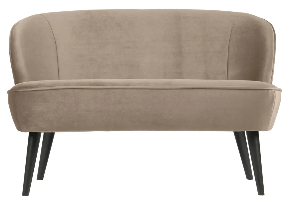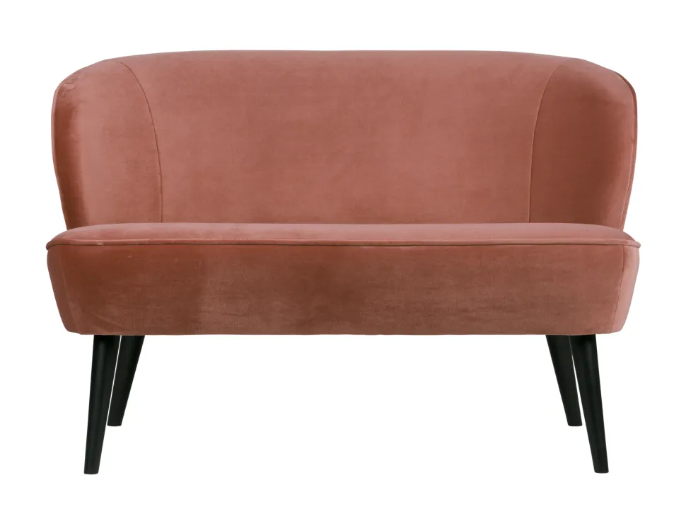 Het bankje ‘Sara’ straalt luxe en comfort uit met zijn zachte velvet stof en elegant zwart gelakte berkenhouten poten. De hoge en licht gebogen rugleuning voegt een sierlijk en klassiek element toe aan het ontwerp, terwijl het ook zorgt voor extra comfort en ondersteuning.