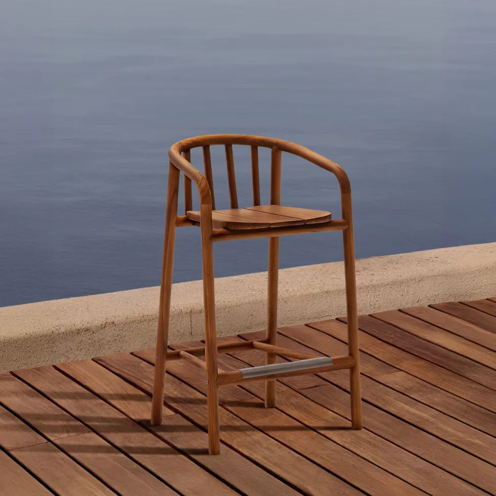 De Turqueta hoge kruk, exclusief ontworpen door Made Studio voor Kave Home, wordt gekenmerkt door zijn massief teakhouten structuur, FSC 100%-gecertificeerd met een garantie voor een verantwoord bosbeheermodel. Het ontwerp is ideaal voor buitengebruik en combineert functionaliteit en esthetiek met armleuningen die zorgen voor meer comfort. Het hout vereist eenvoudig jaarlijks onderhoud met Sterina teakhoutbeschermer. Turqueta maakt deel uit van een collectie die gemakkelijk te combineren is om een harmonieuze en ontspannen sfeer in uw buitenruimtes te creëren.