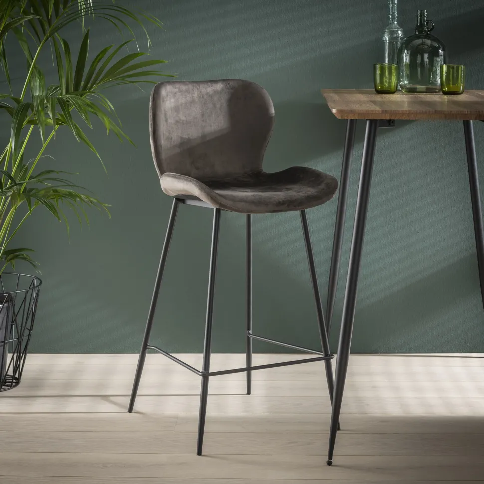 Deze barstoel is uitgevoerd in zowel velvet als bouclé en heeft een metalen onderstel met geïntegreerde voetensteun voor extra comfort. Het model is ook verkrijgbaar als bijpassende eetkamerstoel onder artikelnummer 3738.