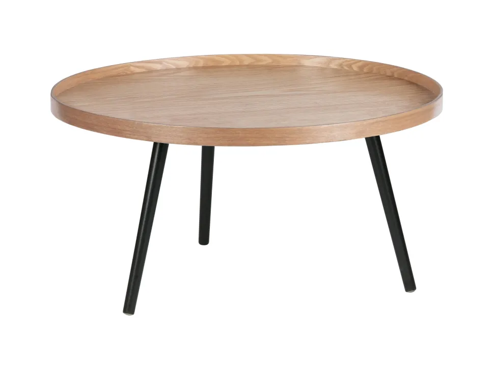 De modieuze bijzettafel Mesa is van het Nederlandse merk WOOOD. Het tafelblad heeft een natuurlijk houtkleur door de essenhouten fineer. Met de drie zwarte poten staat Mesa stevig en stabiel. De poten hebben een hoogte van 42 cm en lopen iets uit.