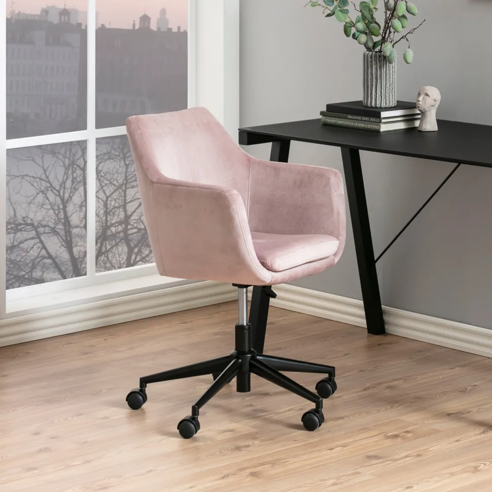 De perfecte bureaustoel voor het thuiskantoor – deze stoel wordt gekenmerkt door een eigentijdse stijl en een klassiek silhouet. De comfortabele gestoffeerde zitting en verzonken armleuning maken deze bureaustoel perfect voor als je thuis werkt. Deze bureaustoel heeft een in hoogte verstelbare zitting, multidirectionele wielen en een draaifunctie. De mooie fluwelen stof voelt opvallend zacht aan en geeft de stoel diepte. Door het fluweel zal het stuk van kleur veranderen afhankelijk van het licht en de richting van de pool, waardoor het een levendige rijke uitstraling krijgt.