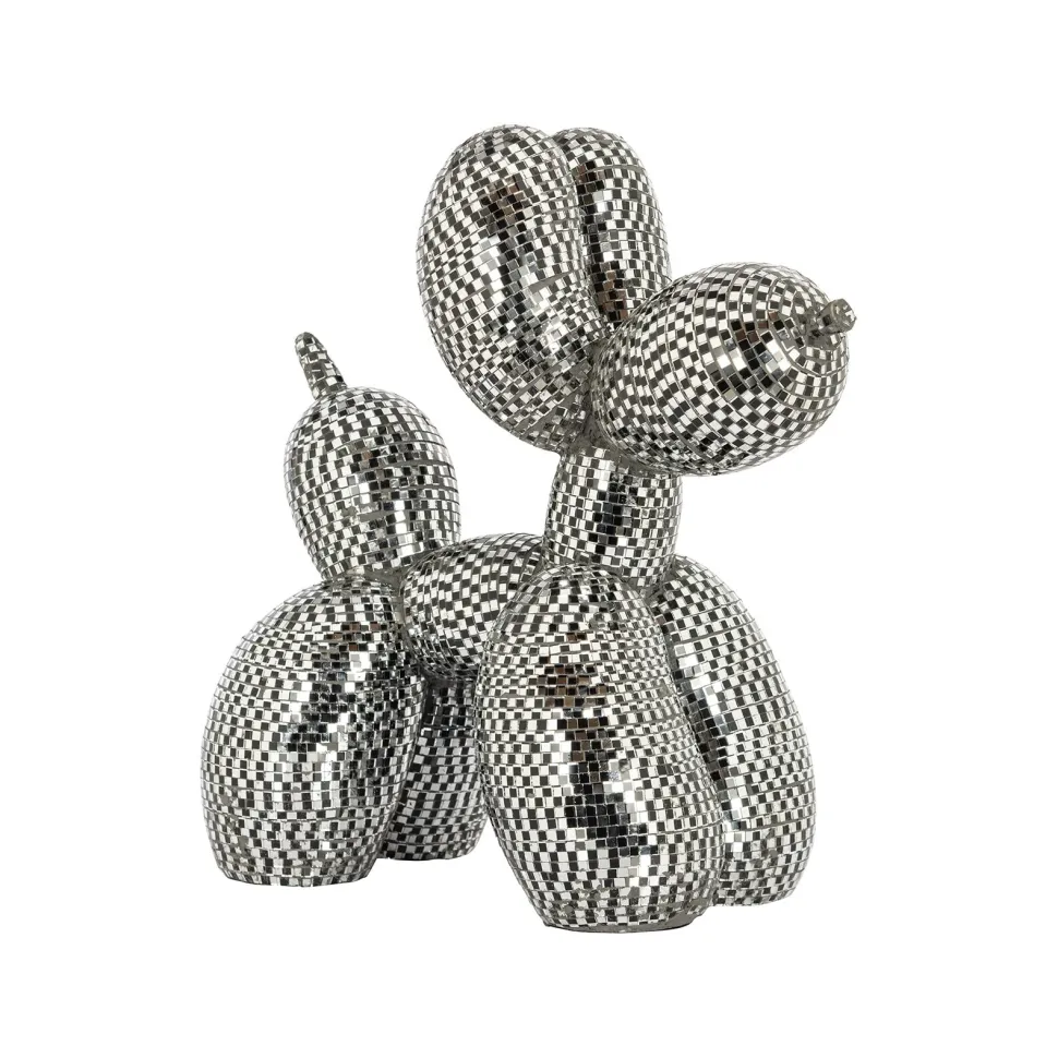 Dit decoratieve object heeft de vorm van een hond en is voorzien van een spiegeloppervlak. Hoewel het niet als een traditionele spiegel functioneert, voegt het reflecterende oppervlak een interessant visueel element toe aan het design.