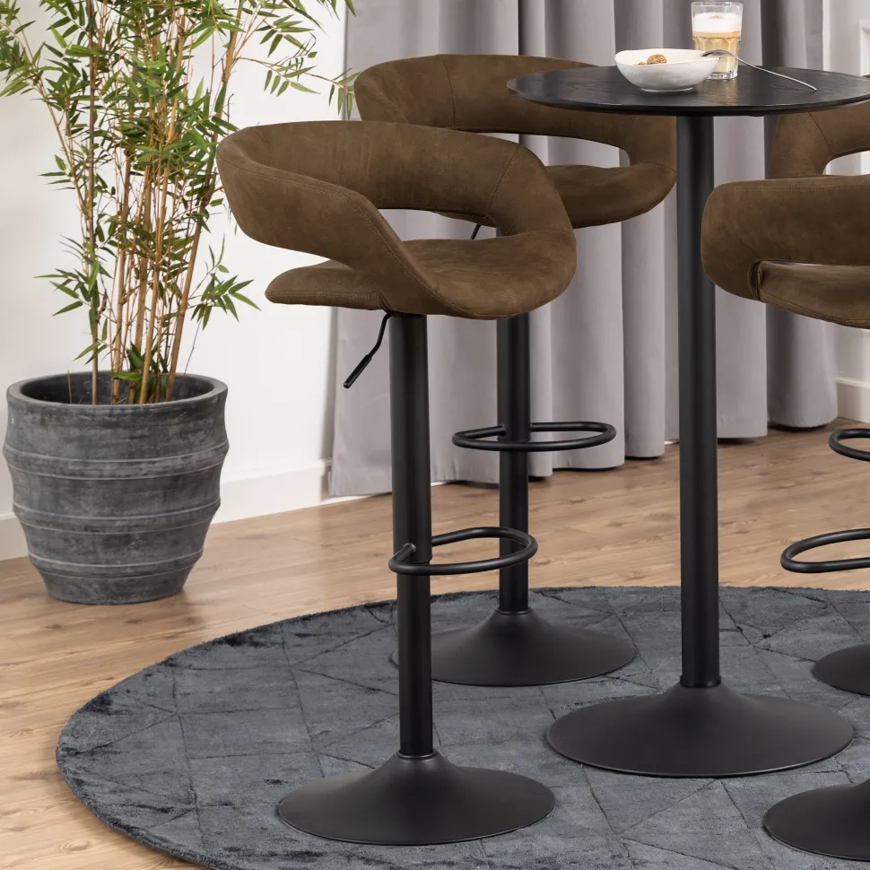 Barkruk ‘Pia’ uit de Bendt collectie is niet alleen comfy, maar ook draaibaar en in hoogte verstelbaar. Je kunt deze kruk dus op vrijwel elke plek in je huis neerzetten. De zachte stoffen zitting en de gepoedercoate trompetvoet en voetsteun zorgen voor stabiliteit en comfort.