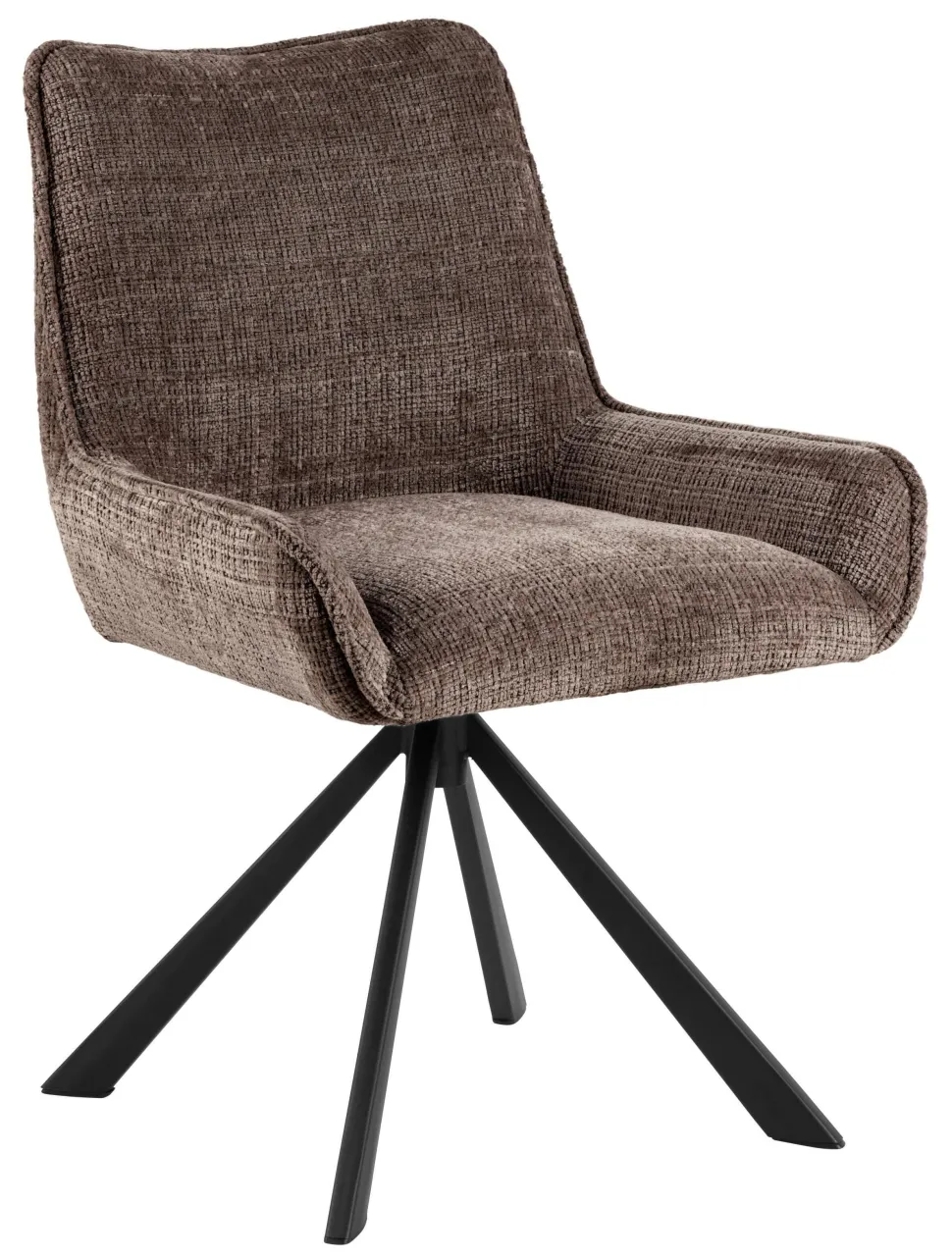 Dit is een eetkamerstoel die met zijn verzonken lage armleuningen en beige stof met een levendig, zacht oppervlak een verfijnd accent geeft aan elke ruimte. De zachte curve van de zitting, elegant omlijnd door biezen, creëert een verfijnd silhouet. Ondersteund door een 4-sterren zwarte draaivoet combineert hij moeiteloos stijl met moderne functionaliteit.