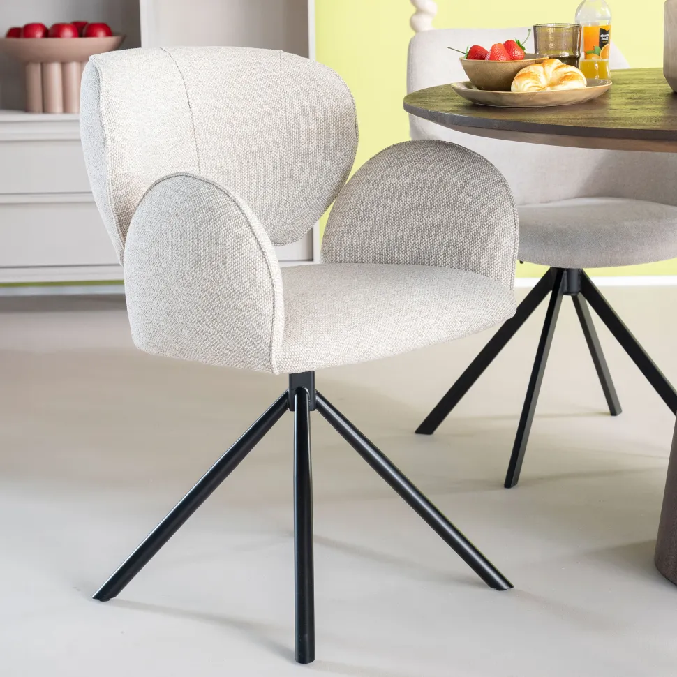 Eetkamerstoel op wielen Thandie Hoven stof en zwart onderstel