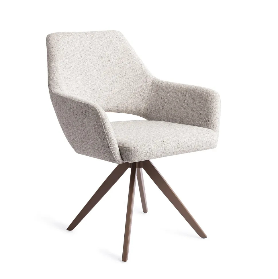 Houd jij van tijdloos design? Dan zit je in de Yanai eetkamerstoel goed. Strakke lijnen in de rug gecombineerd met de ronde lijnen in de inkeping zorgen voor een fijn contrast. De stoffering van de kuip is van hoogwaardig polyester, waar we hebben gekozen voor een stof die ogenschijnlijk simpel is. De Yanai komt in zes kleuren: Pigeon (lichtgrijs), Biscuit Beach (gemêleerd beige en grijs), Amazing Grey (donkergrijs), Tuscan Terra (diep brons), Pink Punch (roze) en Soft Sage (zacht groen). De naturel kleuren matchen moeiteloos met bestaande kleuren uit jouw interieur. De diepe kleur Tuscan Terra en de frisse Soft Sage en Pink Punch zijn wat gewaagder maar zullen als trotse centerpoint om je eetkamertafel staan.