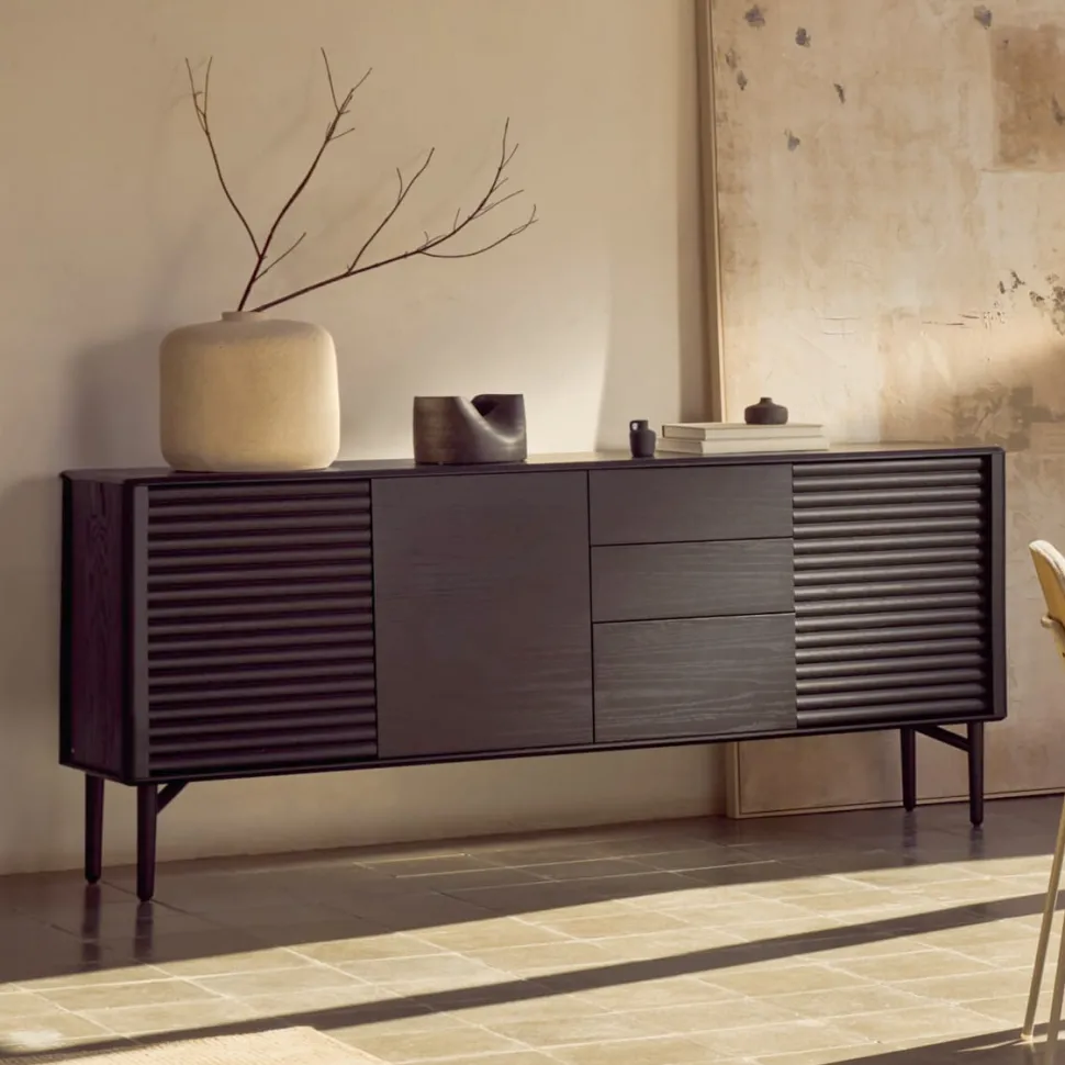 - Dressoir in massief eiken met zwart gebeitste afwerking.