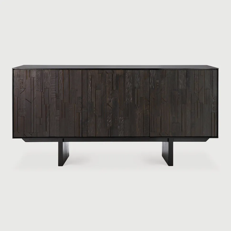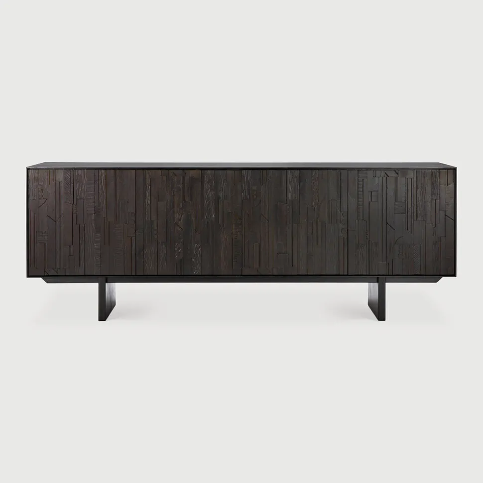 Het begon allemaal met een gelukkig voorval. Geïnspireerd door de overgebleven snijresten van onze fabrieksontwerpen, vormen de gelaagde stukken hout van de Mosaic buffetkast een ritme dat doet denken aan het tussenstuk van een pijporgel. Zo biedt Alain van Havre, die zich tijdens zijn creatieve proces diep laat beïnvloeden door muziek, een hernieuwde vertaling van zijn obsessie voor beweging.