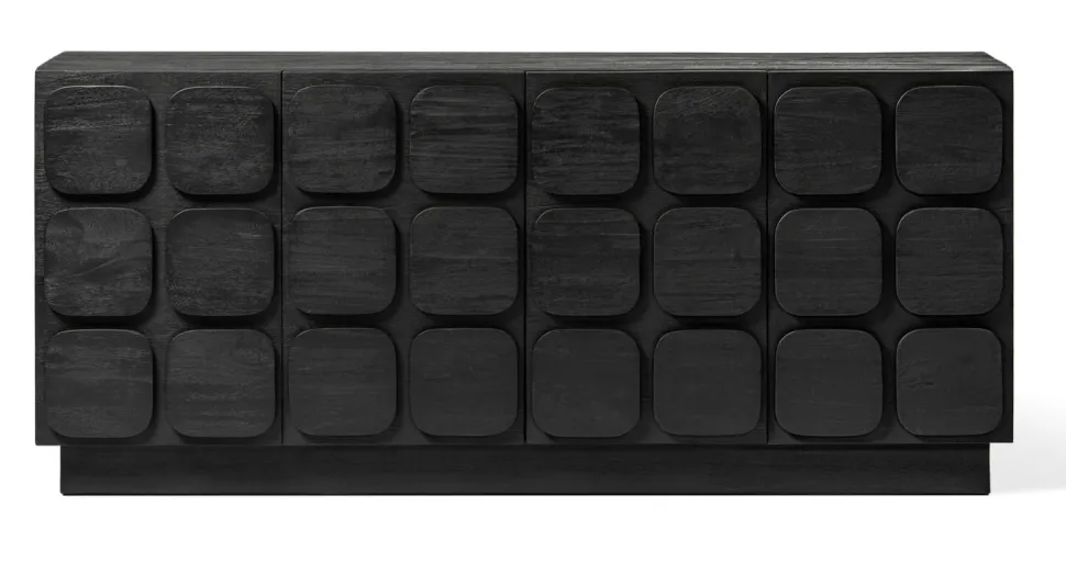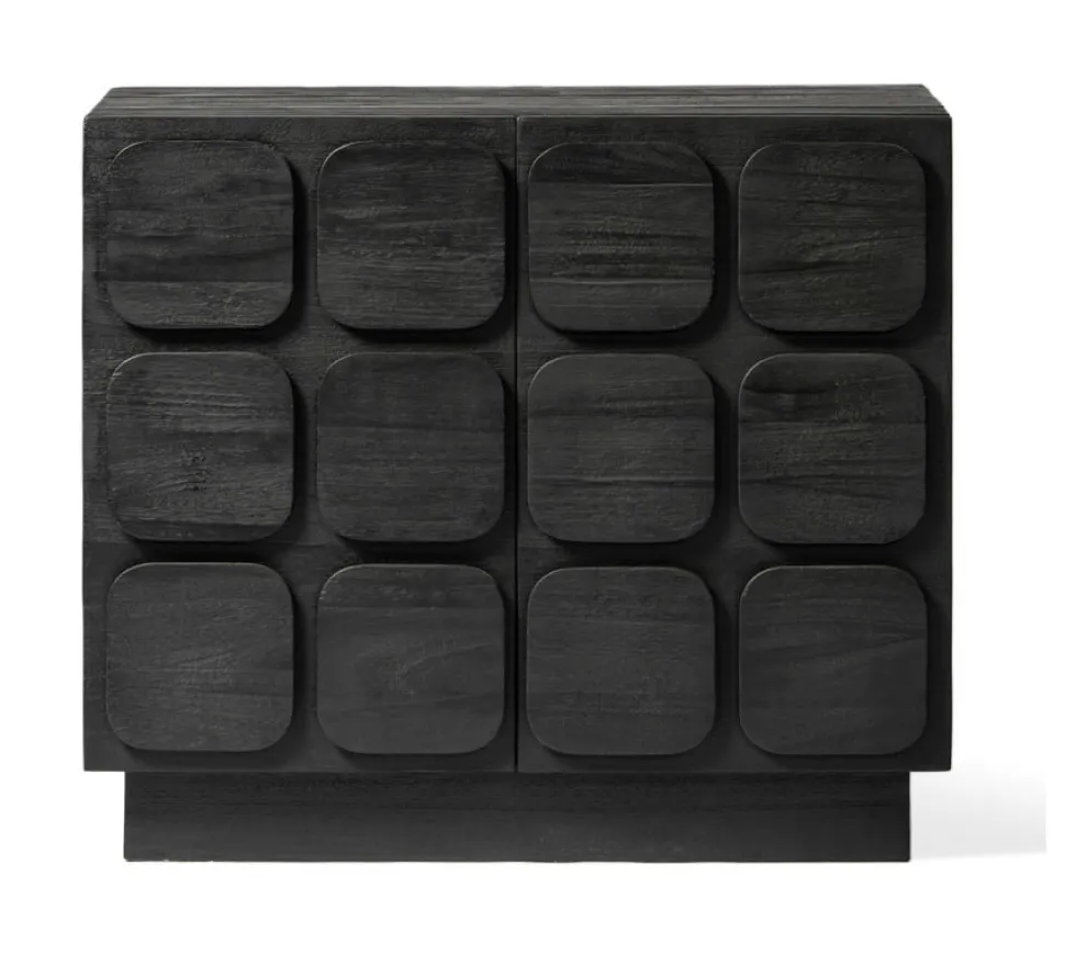 Op zoek naar een strak, stijlvol en subtiel opvallend meubelstuk? Dan is de Sirkka kast de perfecte match. Deze vakkundig gemaakte kast van robuust Mindi hout is afgewerkt met een matte, zwarte finish, en straalt een en al moderne elegantie uit.