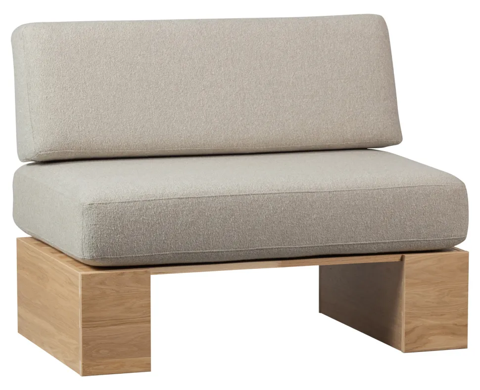 De ‘Eat Up’ eetkamerbank van vtwonen brengt comfort en stijl samen in één opvallend design. Met zijn zachte bouclé zitting en comfy kussens biedt deze muurbank heerlijk zitcomfort voor lange, gezellige avonden aan de eettafel. De grove blokpoten van massief eikenhout zorgen voor een robuuste, natuurlijke uitstraling die perfect past bij een modern of Scandinavisch interieur.