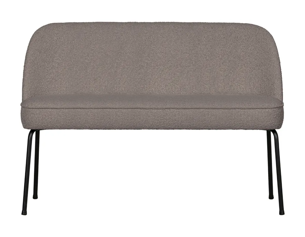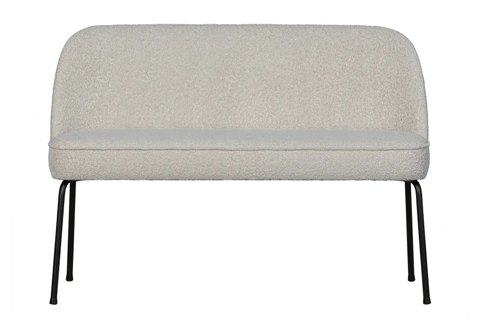 Het materiaal van de Colmar bouclé stof speelt in op de laatste trend: zachte materialen. De stof is comfortabel en heeft een elegante textuur. Onze Colmar bouclé heeft een Martindale van 100.000, dat betekent dat de stof geschikt is voor intensief gebruik. De dichte weeftechniek zorgt voor de sterkte van de stof, dit maakt dat de bouclé niet snel zal slijten of scheuren. Ook heeft elke kleur een hoge kleurvastheid, maar het is aangeraden om direct zonlicht te vermijden om kleurnuances te voorkomen. Het onderstel van de Vogue eettafelbank is gemaakt van metaal met een matzwarte poedercoating. Het frame van de zitting is opgebouwd uit een combinatie van spaanplaat en multiplex. De zitting bevat elastische riemen en een T3542 foam wat zorgt voor een iets stevig zitcomfort wat urenlang een comfortabele zitplaats verzorgt. De rugleuning is gevuld met een T2120 foam.