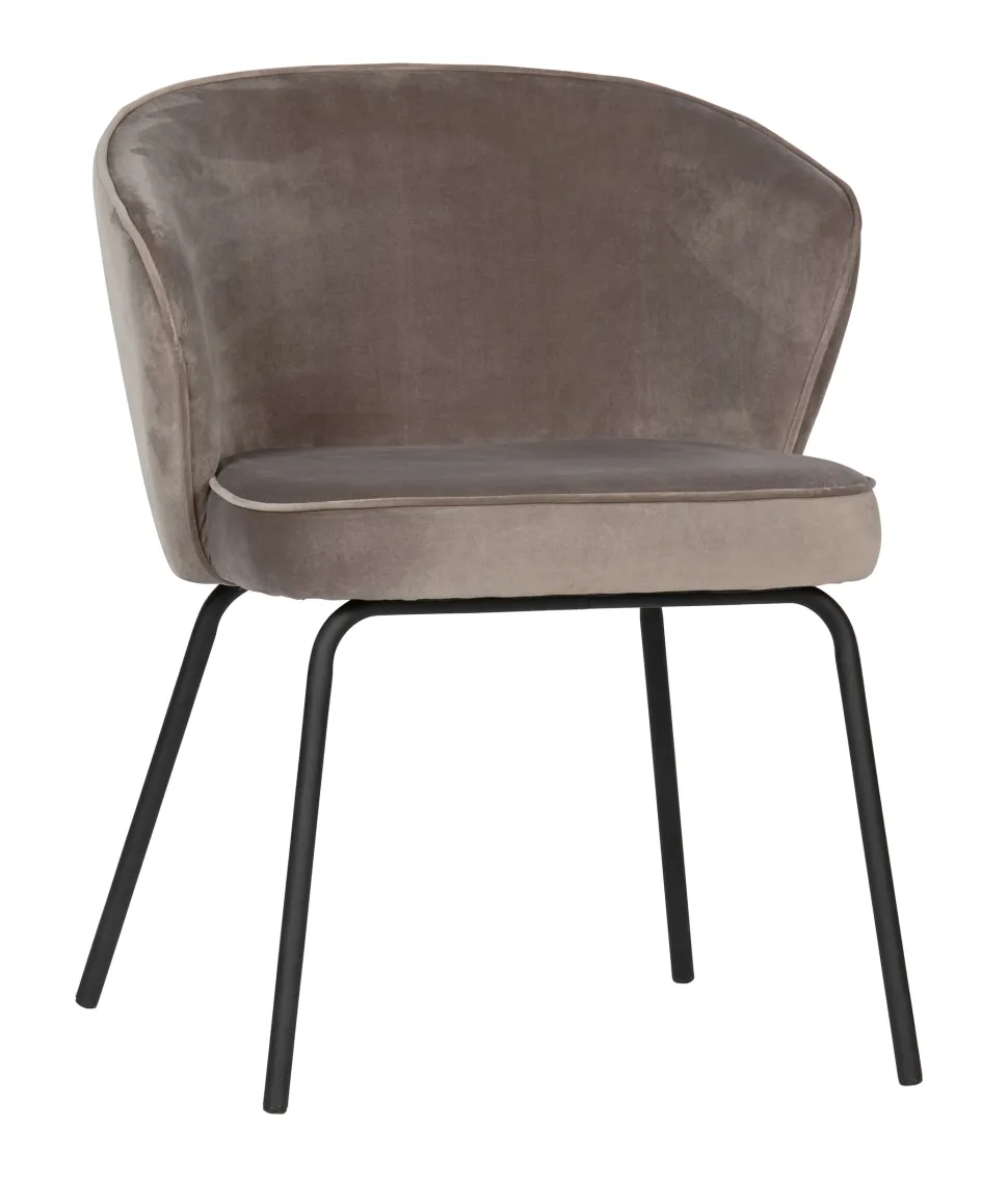 Eetkamerstoel Admit komt uit de collectie van het Nederlandse merk WOOOD. De stoel is bekleed met een zachte velvetstof. Deze stof zien we steeds vaker terug in interieurs en is niet alleen populair door de chique uitstraling. De stof is ook erg onderhoudsvriendelijk. Ideaal dus als er weleens wat geknoeid wordt.