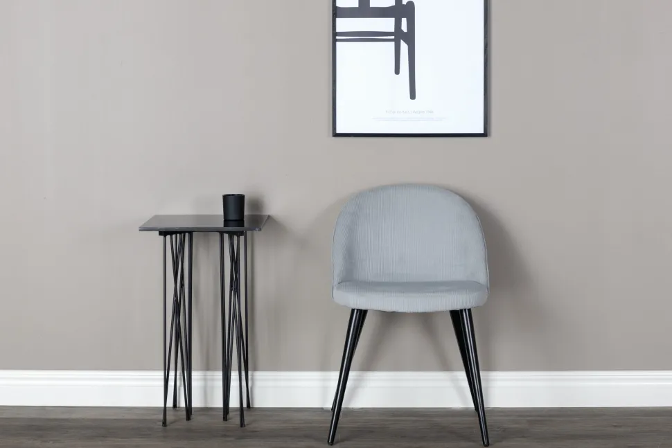 Een moderne stoel uit de Amon serie in stijlvol wit! Deze eetkamerstoel heeft een volledig aangekleed ontwerp met een licht afgeronde rugleuning en zitting in zachte manchester stof en poten in zwart gepoedercoat metaal – gegarandeerd net zo comfortabel als oogstrelend. Lichte montage is vereist. Richt het hart van je huis uitnodigend en gezellig in en geniet samen van heerlijke maaltijden!