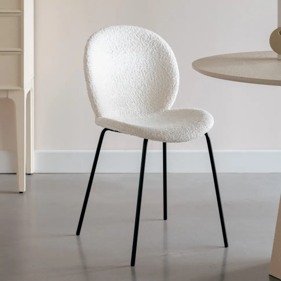 Wij geloven dat eenvoud het belangrijkste ingrediënt is van pure elegantie. Onze Bonnet stoel is het bewijs van deze overtuiging. De eenvoudige lijnen van het zwartmetalen frame laten de teddystof opvallen met textuur. Bonnet is vernoemd naar een elegant, vrouwelijk hoedje dat Parijse dames droegen.