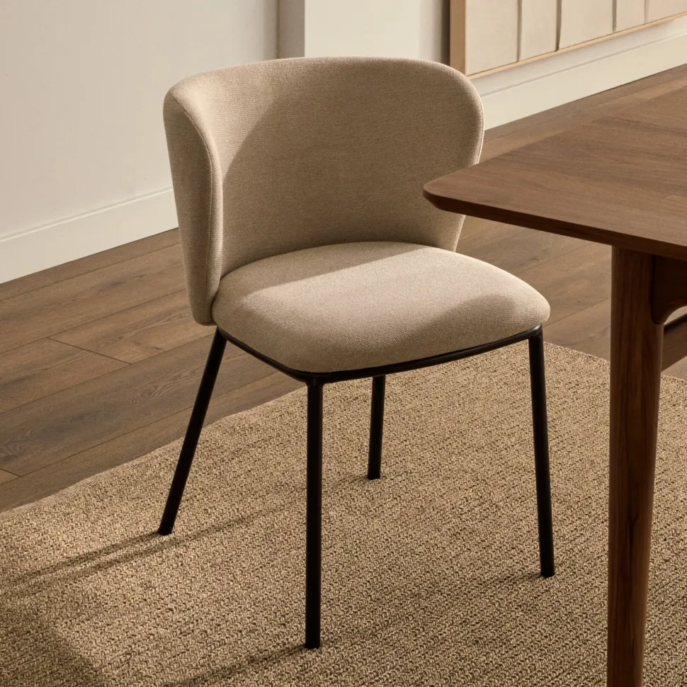 Design voor maximaal comfort met een eigentijdse vorm: De Ciselia stoel voegt een vleugje stijl toe dankzij de bekleding in trendy chenille stof. De perfecte stoel om elk moment speciaal te maken.
