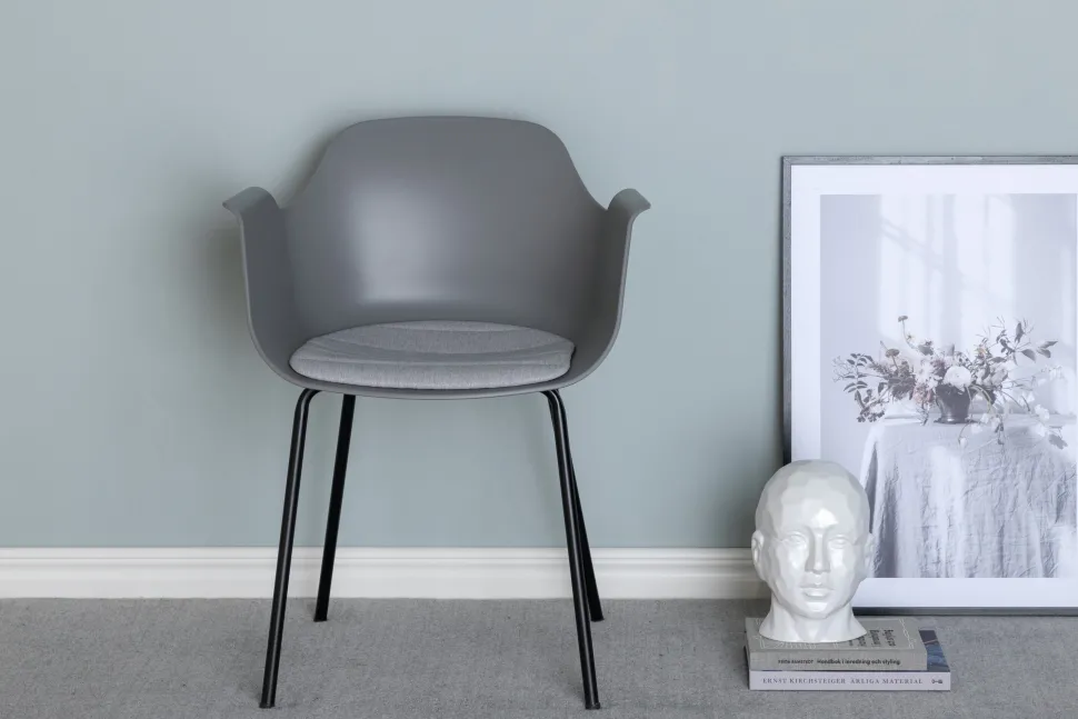 Clentor heeft een ontspannen ontwerp met royale zitdiepte en een aangename grijze kleur! De rugleuning en zitting met geïntegreerde armleuningen, gemaakt van duurzaam en praktisch materiaal, zijn van grijs gegoten kunststof. De poten zijn van zwart gepoedercoat metaal. Inclusief een dun grijs zitkussen voor extra Clentor. Enige montage vereist.