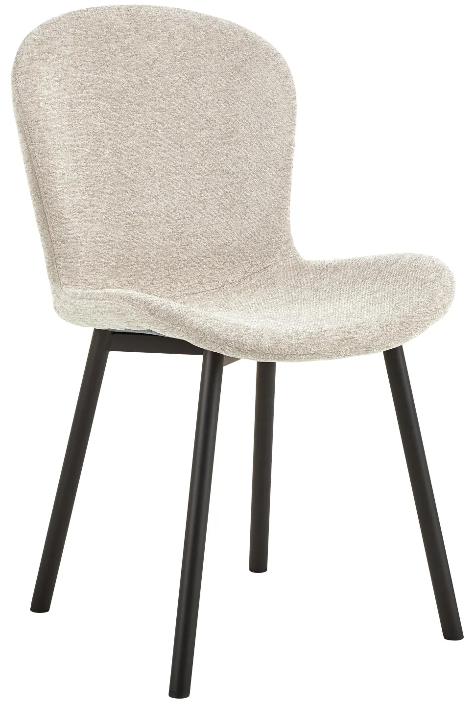 De golvende rondingen en contrasterende zwarte poten van deze eetkamerstoel kunnen de eetkamer opfleuren. Hij is bekleed met een zachte beige chenille-achtige stof en past goed bij verschillende kleuren en materialen. De combinatie van eigentijdse accenten en zachte elegantie voegt een unieke allure toe. Zo’n stoel is een opvallend stuk voor zowel informele familiemaaltijden als speciale gelegenheden.