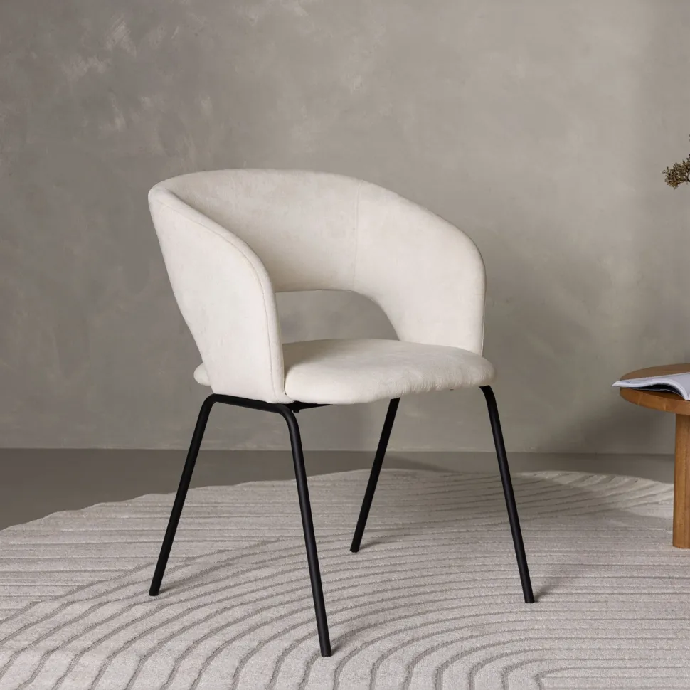 Zet de toon in het hart van je huis met moderne eetkamerstoelen uit de Elwood serie! Deze eetkamerstoelen trekken de aandacht met hun doordachte ontwerp, zachte vormen en minimalistische structuur. De volledig aangeklede zitting met de open achterkant is van witte linnen stof en de stoelpoten zijn smal van zwart staal. Verhoog het stijlniveau in je huis en creëer een modebewuste sfeer!