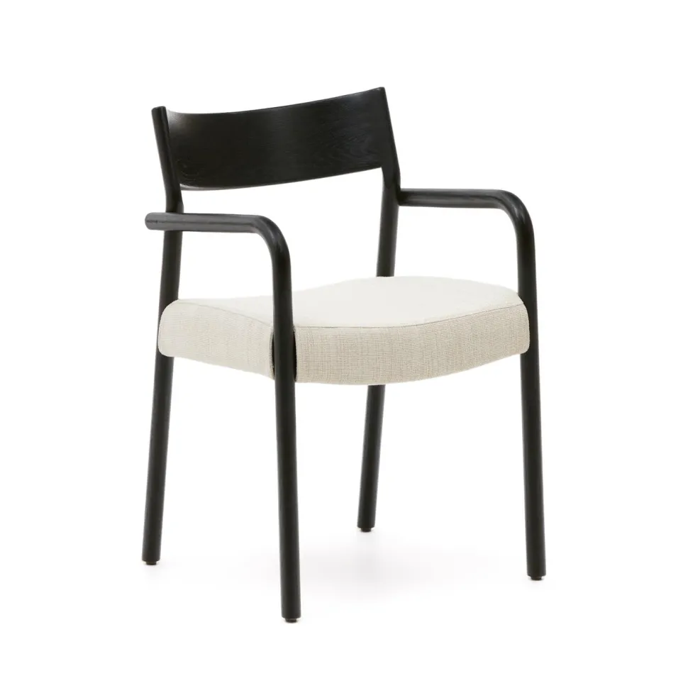 - Stoel van massief eikenhout met een walnoten afwerking.