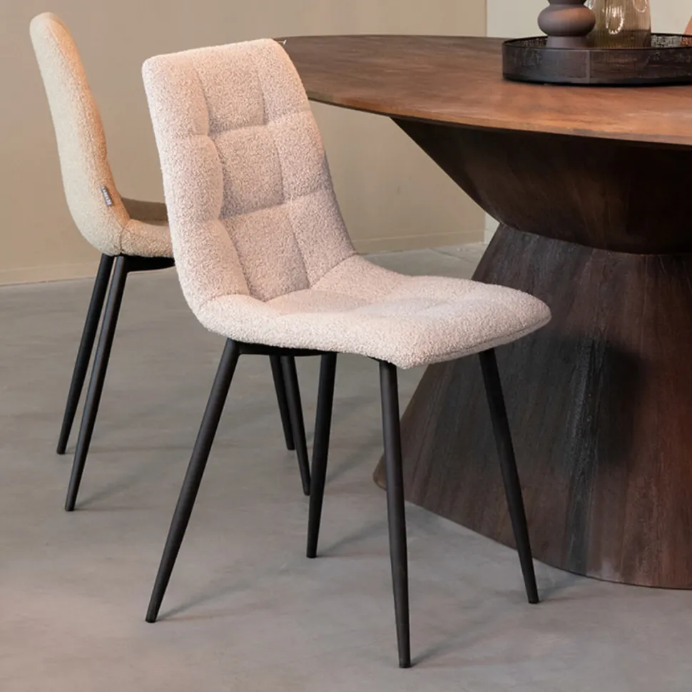 Eetkamerstoel Juul van LABEL51 is een prachtige stoel, verkrijgbaar in verschillende kleuren Touch. De prachtige blokstiksels in combinatie met het 3D effect door de extra vulling vormen een lust voor het oog!