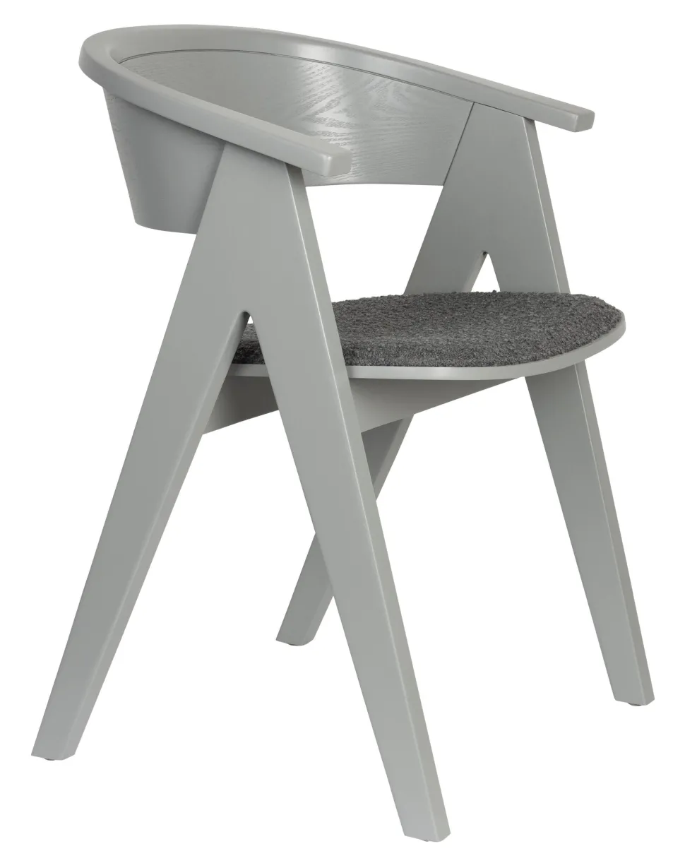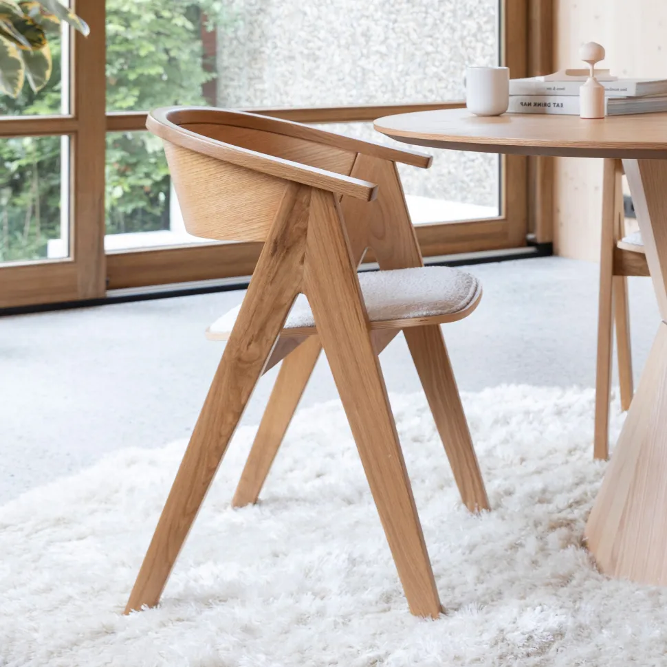 - De bijpassende gestoffeerde bouclé zitting biedt de NDSM-stoel volledig comfort.