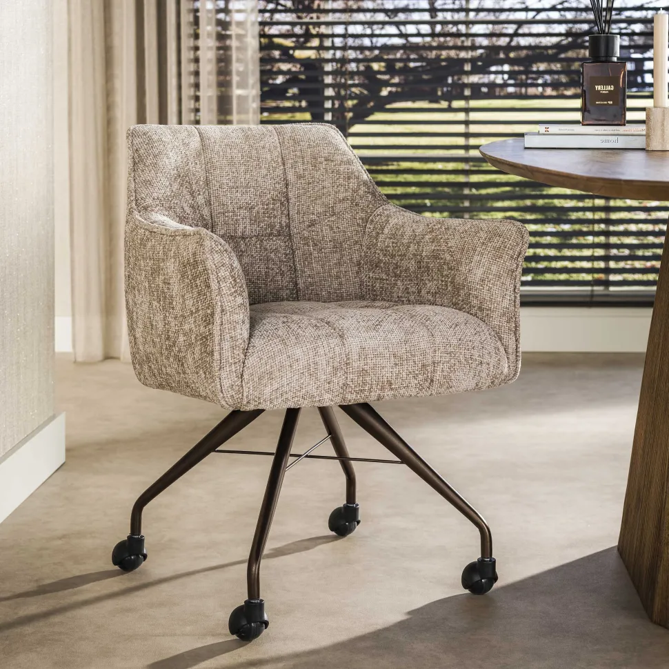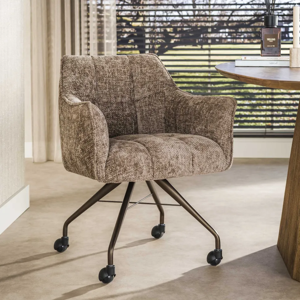 Eetkamerstoel op wielen Thandie Hoven stof en bruin onderstel