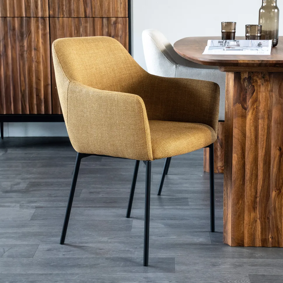 Eetkamerstoel op wielen Thandie Hoven stof en zwart onderstel