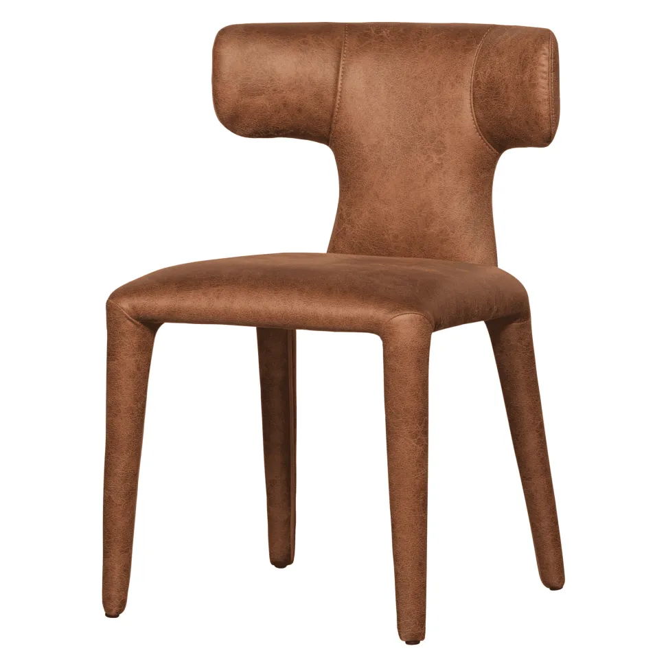 De stoel is opgebouwd uit een stalen frame met een multiplex zitting, in zijn volledigheid bedekt met een PU foam laag en van top tot teen bekleed met onze Tippy leerlook. Onze Tippy leerlook heeft een unieke uitstraling en luxe grip. De samenstelling bestaat uit 91% polyester en 9% katoen, wat de stof zowel stevig als comfortabel maakt. De stof heeft een Martindale-waarde van 45.000. De Tippy stof is gemakkelijk te onderhouden, waardoor ze ideaal is voor dagelijks gebruik.