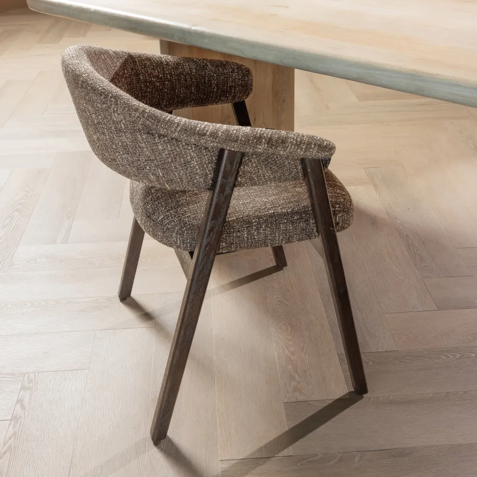 De Tunar eetkamerstoel met armleuning brengt gezelligheid aan je eettafel. Het natuurlijke eikenhout combineert met de bruine stof en creëert een warme uitstraling in je eetkamer. De sterke constructie zorgt ervoor dat je jarenlang kunt genieten van deze stoel. Of je nu ontspannen zit tijdens het diner met vrienden of familie, de Tunar biedt het comfort dat je zoekt. De armleuningen voegen extra ondersteuning toe en maken elk moment aan tafel prettiger. Deze eetkamerstoel van het Nederlandse interieurmerk WOOOD past in meerdere woonstijlen en vormt een uitnodigende plek om aan te schuiven.