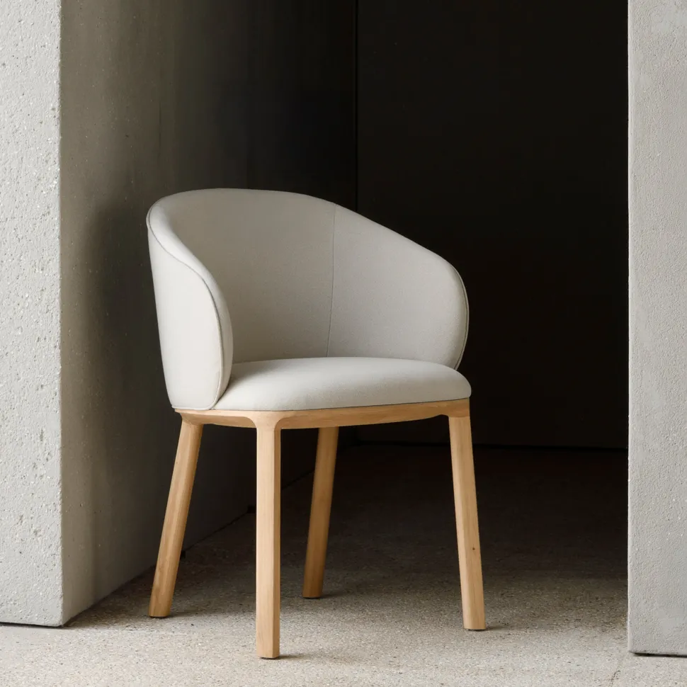 Ervaar eetcomfort zoals nooit tevoren met de Unda. Gedefinieerd door de mix van materialen, volgen de vloeiende lijnen en de met zorg gemaakte afwerking de contouren van de beklede stoel. Ontworpen door Studio Segers, bekend om hun pure en eerlijke benadering, weerspiegelt elk detail — tot de uniek gevormde poten — verfijning.