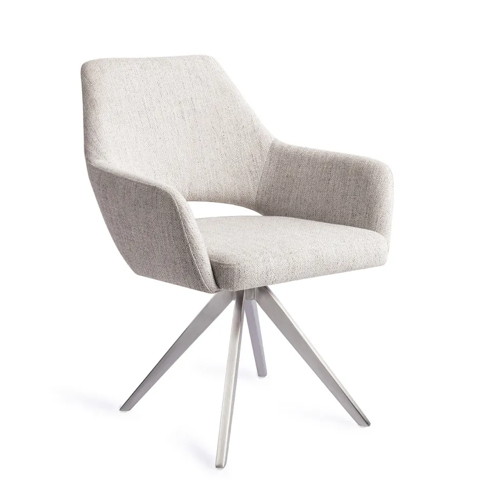 De Yanai eetkamerstoel is een goed voorbeeld van tijdloos design. De strakke lijnen op de rugleuning combineren prachtig met de ronde lijnen in de inkeping. De zitting is bekleed met een hoogwaardige polyester stof. De grove weving van de stof geeft de stoel een speelse uitstraling, maar is ook erg duurzaam. Je kunt kiezen uit verschillende kleuren, welke fijn matchen met elkaar maar ook met andere kleuren in jouw interieur.