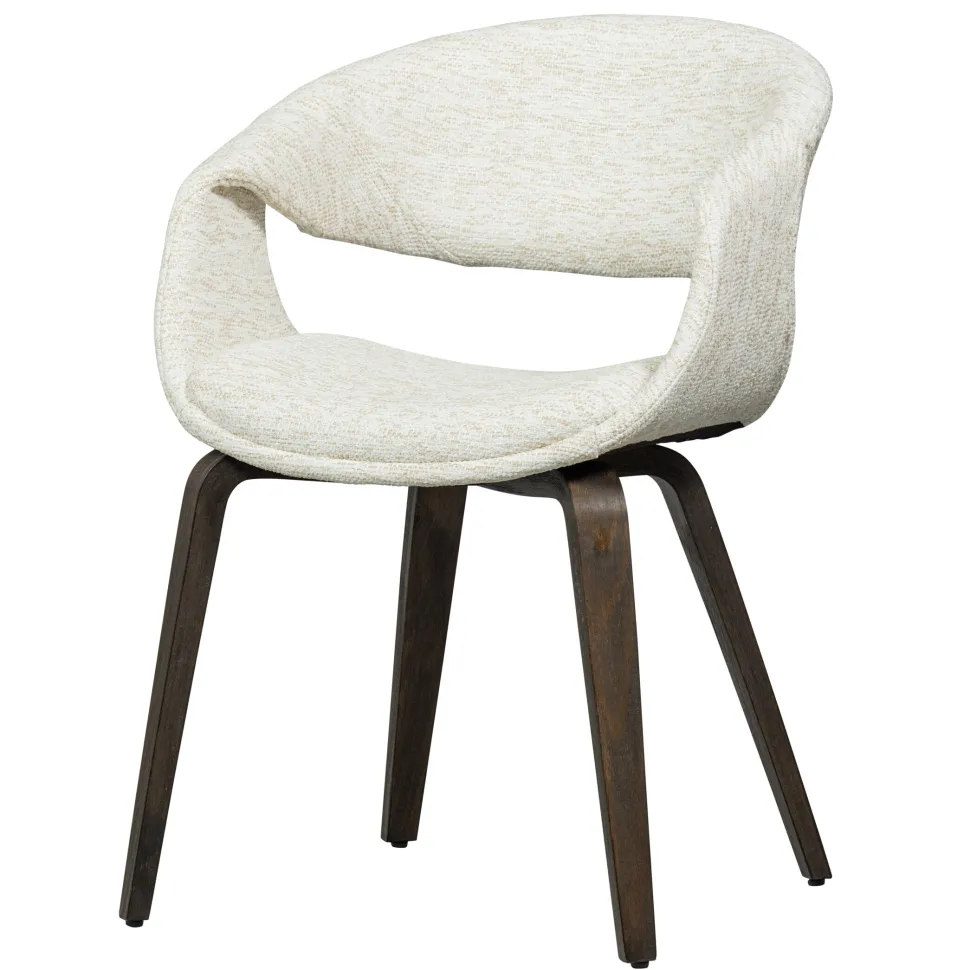 De Yossi eetkamerstoel komt uit de collectie van het Nederlandse merk WOOOD en heeft een stevig houten onderstel en een comfortabele zit. De stoel is in verschillende uitvoeringen verkrijgbaar, zodat je de perfecte match voor jouw interieur kunt vinden. De Yossi is bekleed met een geweven stof van 100% polyester, wat zorgt voor een stijlvolle uitstraling. Een bijzonder detail is de afwerking rondom de armleuning. Deze elegante en comfortabele eetkamerstoel is perfect om urenlang te tafelen.