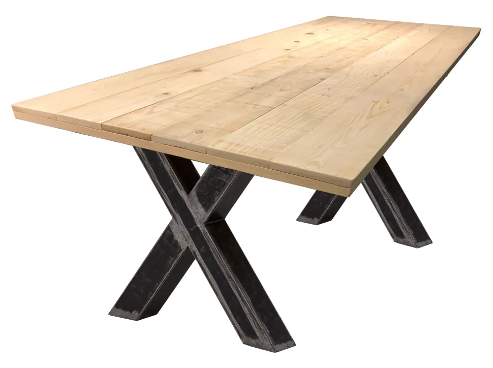 Eetkamer, veranda, serre of terras – de combinatie van robuust mangohout en zwaar metaal zorgt voor een moderne uitstraling die positief afwijkt van de norm. Bestaande uit 8 houten latten met een natuurlijke nerf, is dit tafelblad een echte blikvanger. Het kan “rustiek” en “elegant” zijn, het kan “binnen” en “buiten” gebruikt worden. Uiteindelijk bepaal je zelf het gewenste uiterlijk, want het natuurlijke oppervlak zal natuurlijk veranderen, afhankelijk van het gebruik. Je bent vrij om het hout te beschermen, te vernissen, te glazuren of te oliën – net zoals je het mooi vindt. Overeenkomstige verven zijn in hopen verkrijgbaar in elke bouwmarkt. Als je niets doet, zal de tafel zijn natuurlijke patina ontwikkelen en voortdurend van “gezicht” veranderen. De frames in “fabrieksstijl” zijn opzettelijk grof om de gewenste “used look” te onderstrepen. Door het gebruik buiten zal er zeker snel roest ontstaan. Maar ook hier kun je zelf bepalen waar je de tafel gebruikt en zo het uiterlijk beïnvloeden.
