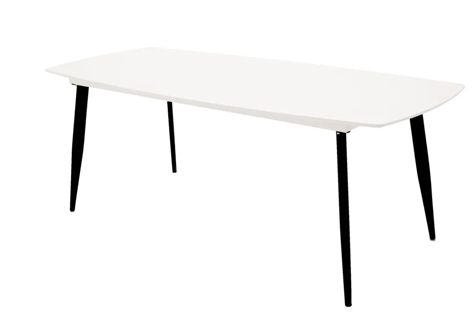 Eettafel Austina in een Scandinavisch ontwerp met een tafelblad van wit MDF en een tafelpoot van zwart metaal. Richt het hart van het huis in met traditionele kleurschakeringen die nooit uit de tijd raken. De rechthoekige, licht afgeronde vorm geeft een uitnodigende indruk. De eettafel is gemakkelijk te combineren met andere inrichtingen en blijft overeind met zijn klassieke uitstraling – wat wil je nog meer?