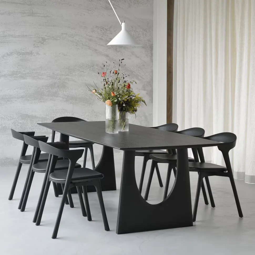 De Geometric massief eiken eettafel, met zijn rijke vormen en onverwachte details, is een pronkstuk dat zich zowel in de eetkamer als op de werkplek thuis voelt. De luxueuze lengte wordt gebalanceerd door afgeronde randen en natuurlijke lijnen. De bijzondere vormen zorgen voor extra volume en praktisch comfort.