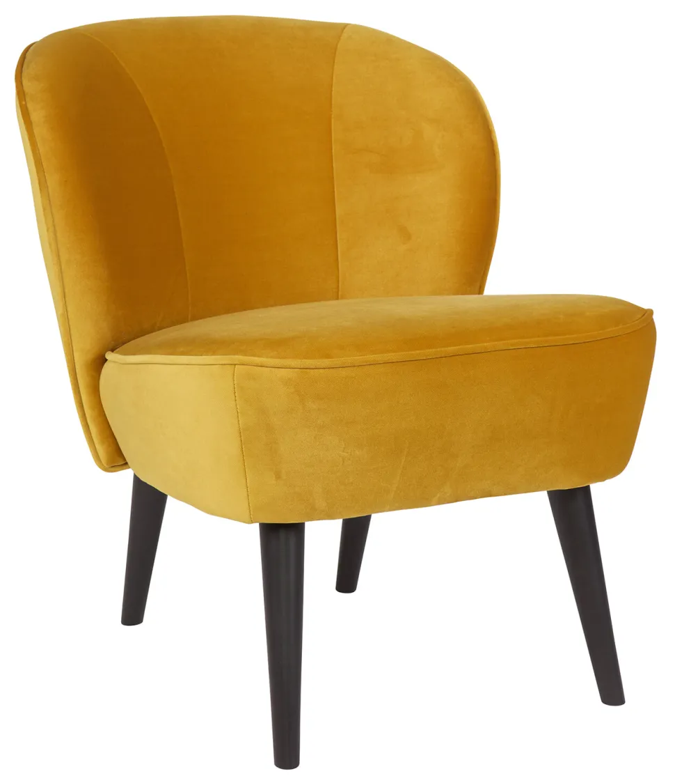 De WOOOD fauteuil Sara is een prachtige stoel met zwart gelakte berkenhouten poten. Het is een stoel met een comfortabele zit. De stoel is gestoffeerd in de kleur oker geel. De afmetingen zijn (hxbxd): 71x59x70 cm met een zithoogte van 44 cm en een zitdiepte van 50 cm. Bij deze fauteuil Sara zijn ook bijpassende poefjes en een hocker apart verkrijgbaar.