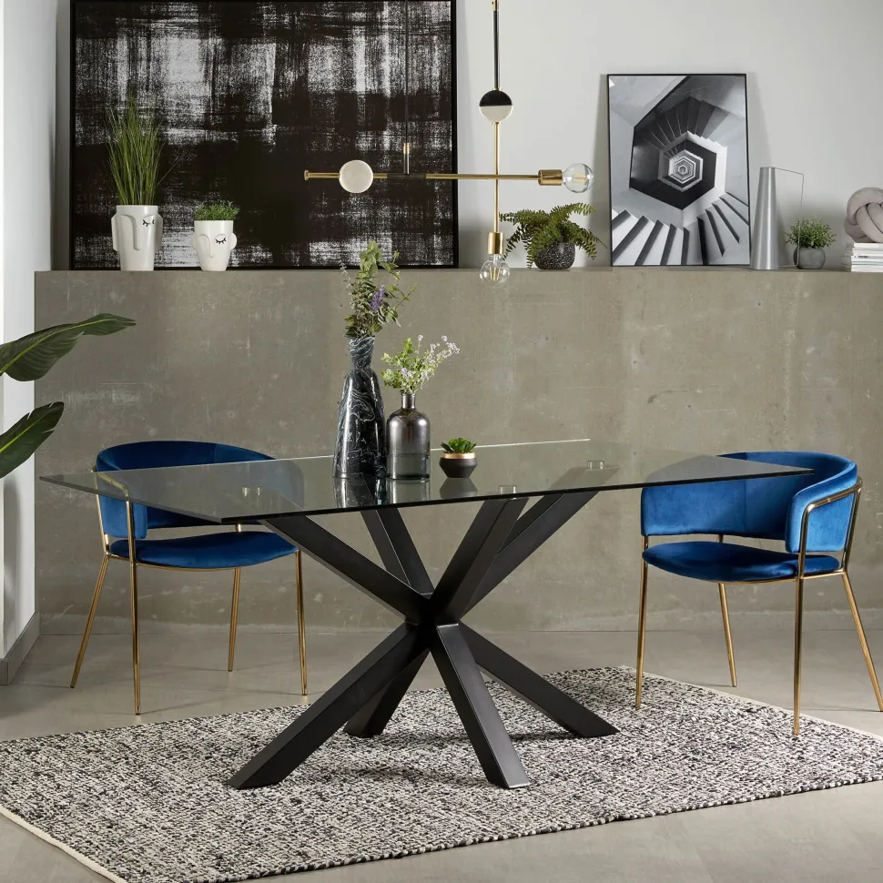 | Materiaal: | Zwart metalen onderstel met gehard glazen blad (12mm dik) |