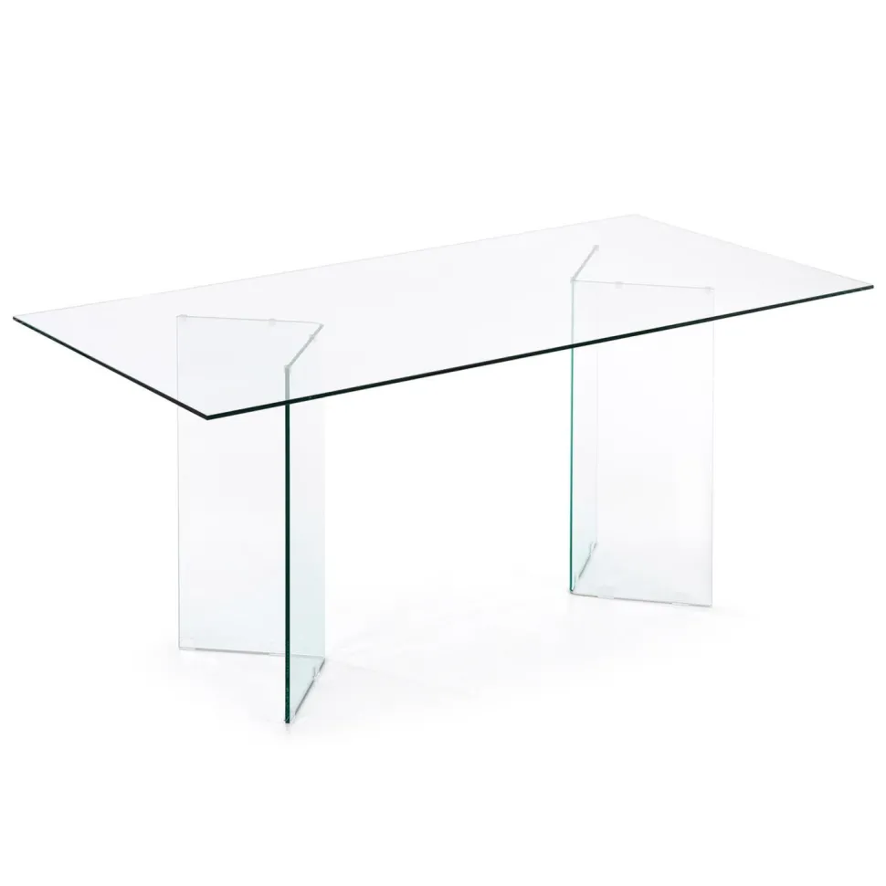 - Minimalistisch design van glas, met vloeiende lijnen en afgeronde uiteinden. Ideaal voor kleine ruimtes, het creëert licht en een gevoel van ruimte.